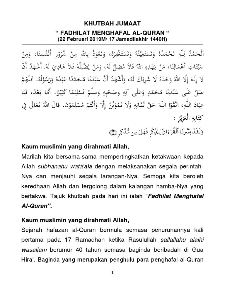 Khutbah Jumaat Fadhilat Menghafal Al Quran Pdf
